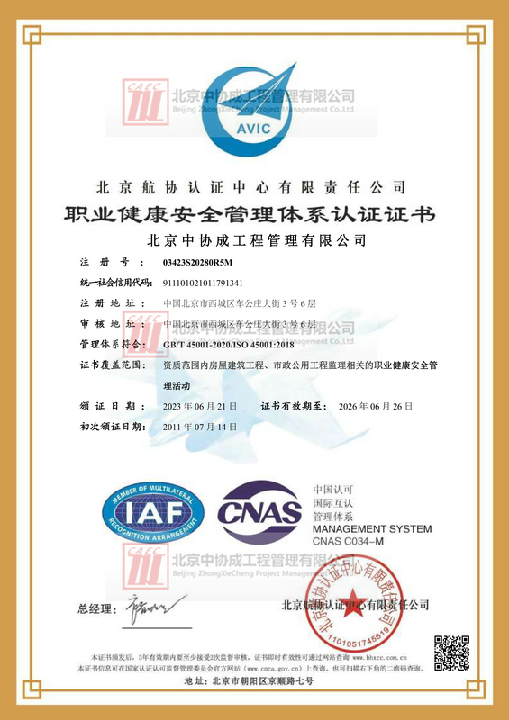 职业健康安全管理体系认证证书