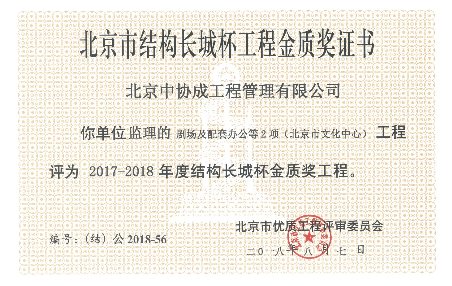 2017-2018剧场及配套办公等2项(北京市文化中心)结构长城杯金质奖