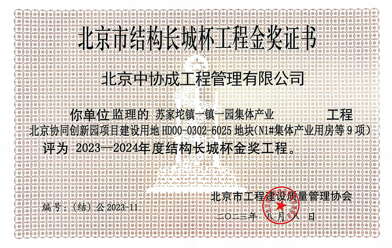 2023-2024年度结构长城杯金奖工程-苏家坨镇一镇一园集体产业北京协同创新园项目建设用地HD00-0302-6025地块工程